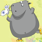 И бегемотик больше не болеет. Он бегает по болоту в бабочкиных башмачках. (Они бабочке были большие). А бабочка – у бегемота на боку. Белая-белая. С бирюзовым бочком.