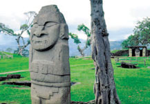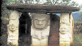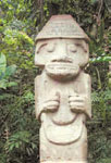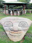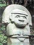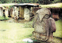 – Да не я, а тарелка моя. Пришлось приземляться. Выхожу я из тарелки, а вокруг – красотища! Везде горы и лес, а на полянках стоят огромные скульптуры. Каменные люди, звери, птицы и вообще какие-то непонятные существа, вроде меня! Они все очень большие, метров по пять или даже семь в высоту! Местные жители сказали, что эти памятники соорудили чуть ли не три тысячи лет назад. Древние люди верили, что эти камни защищают их от злых духов. А теперь более пятисот каменных изваяний собрали по всей стране и поставили в этом парке. Если меня кто-нибудь будет искать, передай, я ещё денёк побуду здесь! Парк находится... записывай адрес! Южная Америка, Колумбия, город Сан-Августин.