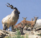 Винторогие козлы – мархуры – живут высоко в горах. Из всех горных козлов они самые большие и мощные