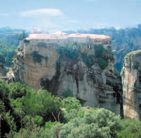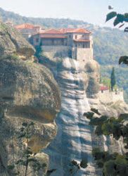 Есть в Греции удивительное место. Над зелёной долиной поднимаются огромные каменные столбы. Их склоны абсолютно отвесные. А на верхушках этих странных каменных «пальцев», на высоте 300-500 метров от земли стоят монастыри!