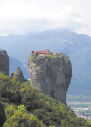 Первую церковь здесь построили 700 лет назад. Говорят, основателя монастыря сюда принёс ангел или горный орёл. Все материалы для строительства и самих людей поднимали на канате в раскачивающейся над пропастью сетке. Один такой головокружительный подъём занимал полчаса. Поэтому чтобы втащить наверх всё нужное для строительства, уходило от 20 до 70 лет! Такой верёвочный лифт используется до сих пор. Эти поразительные монастыри называют «Метеора» – парящие в воздухе.