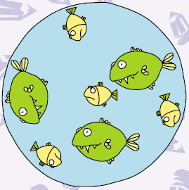 Защити маленьких рыбок отхищных тремя прямыми линиями