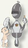 В Южной Корее построен человекоподобный робот, который должен ухаживать за детьми. Машина может быть ещё и охранником, она держит связь с хозяином через интернет. На груди у робота есть монитор и камера, при помощи которых дети могут общаться с родителями, находящимися на работе.