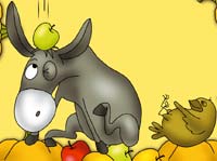 Однажды ишак зашёл в сад. Смотрит: на деревьях яблоки висят, а рядом на земле тыквы зреют.